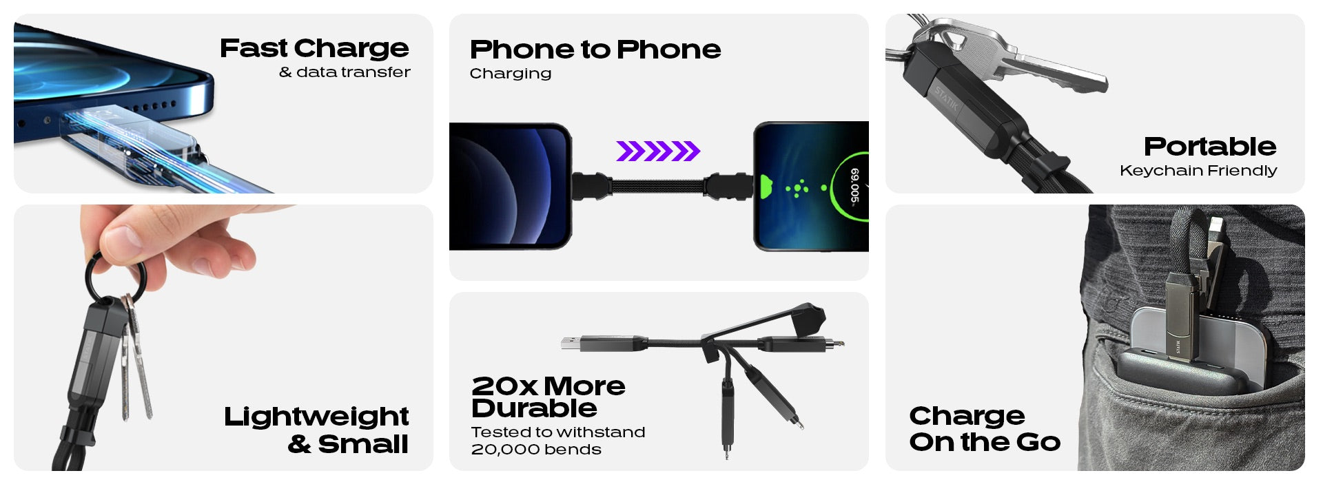 Statik® HexCharge | Universal On-The-Go Charging Cable