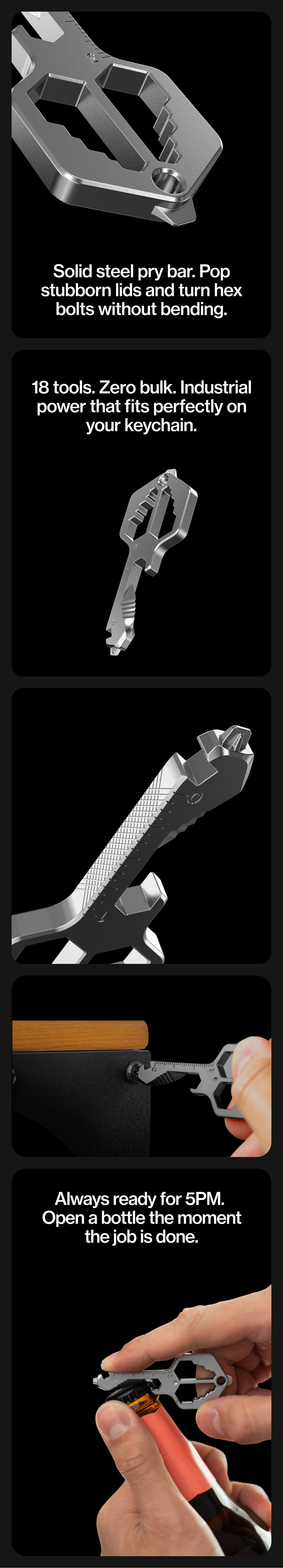 A Toolbox on Your Keychain: MultiTool Pro packs 18 essential tools into a compact, key-shaped design you can carry anywhere. From wrenches and screwdrivers to a bottle opener and file, it’s built to handle everyday fixes without weighing you down.